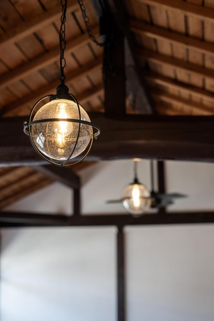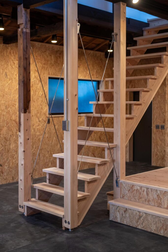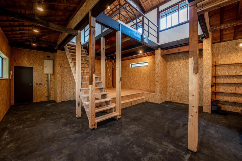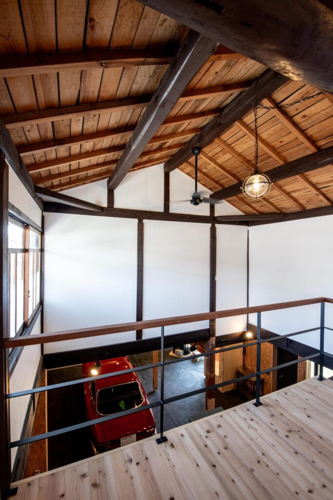 古梁を活かした吹き抜けのあるオープンスペース