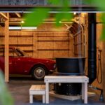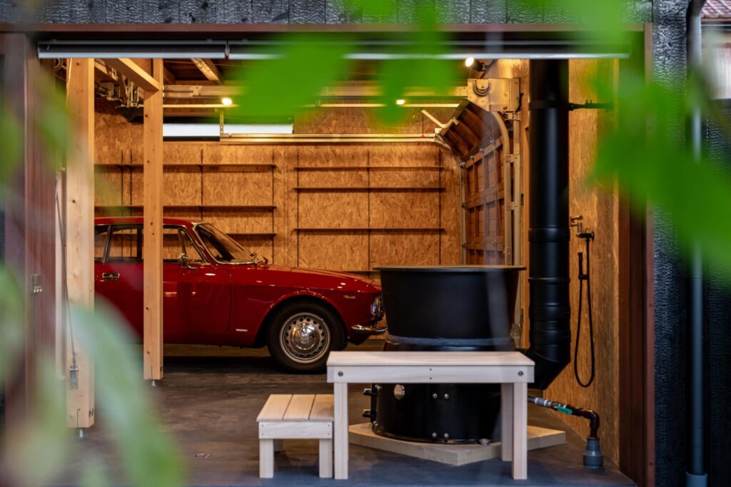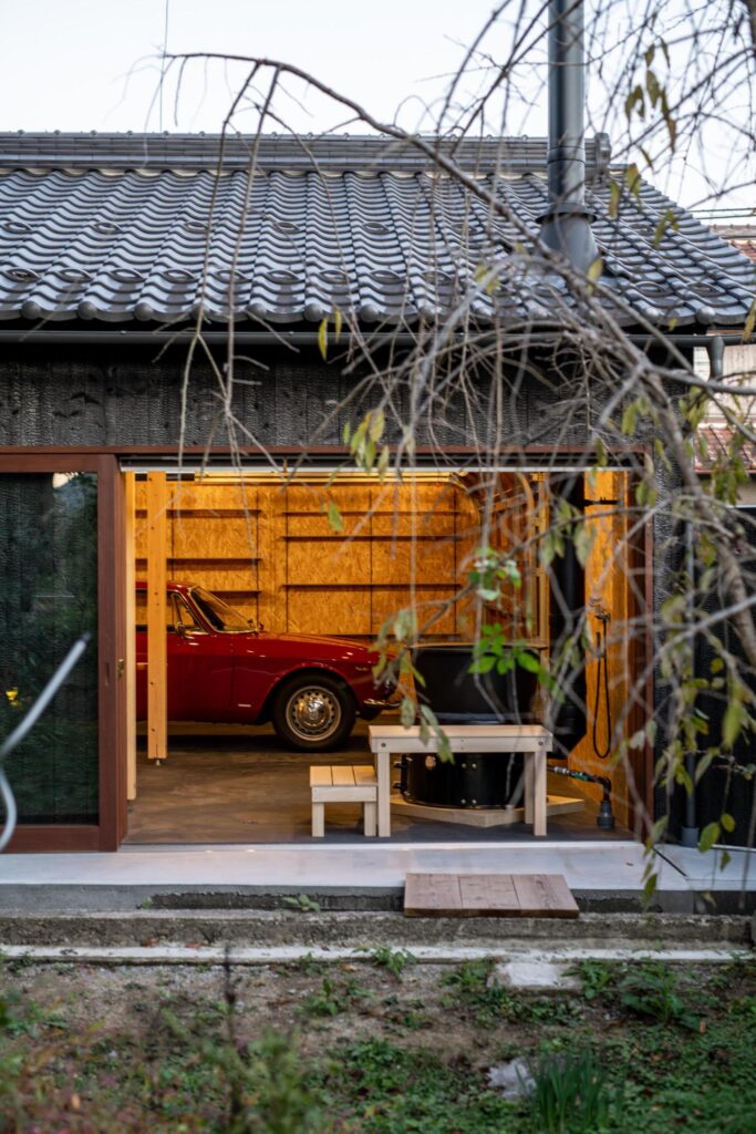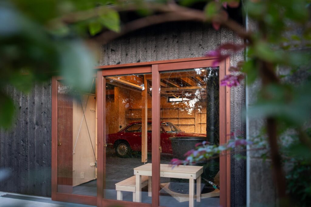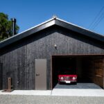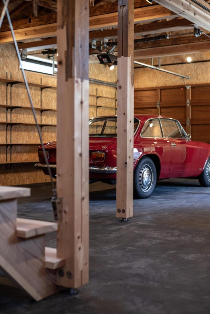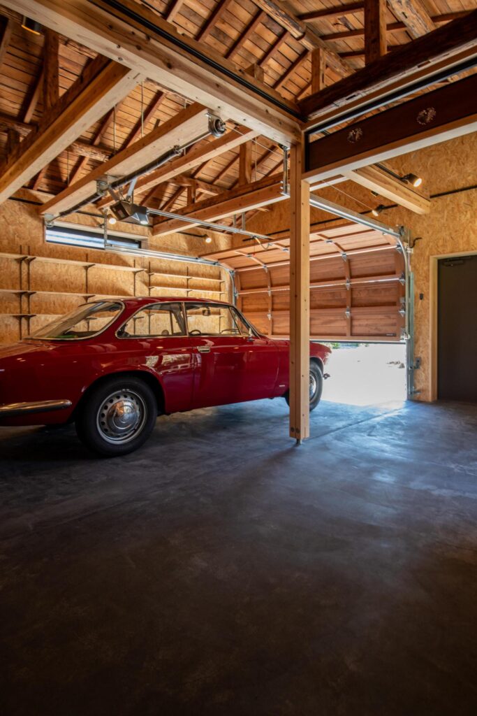 木製のオーバースライドやシャッターが付いた大人かっこいいガレージ