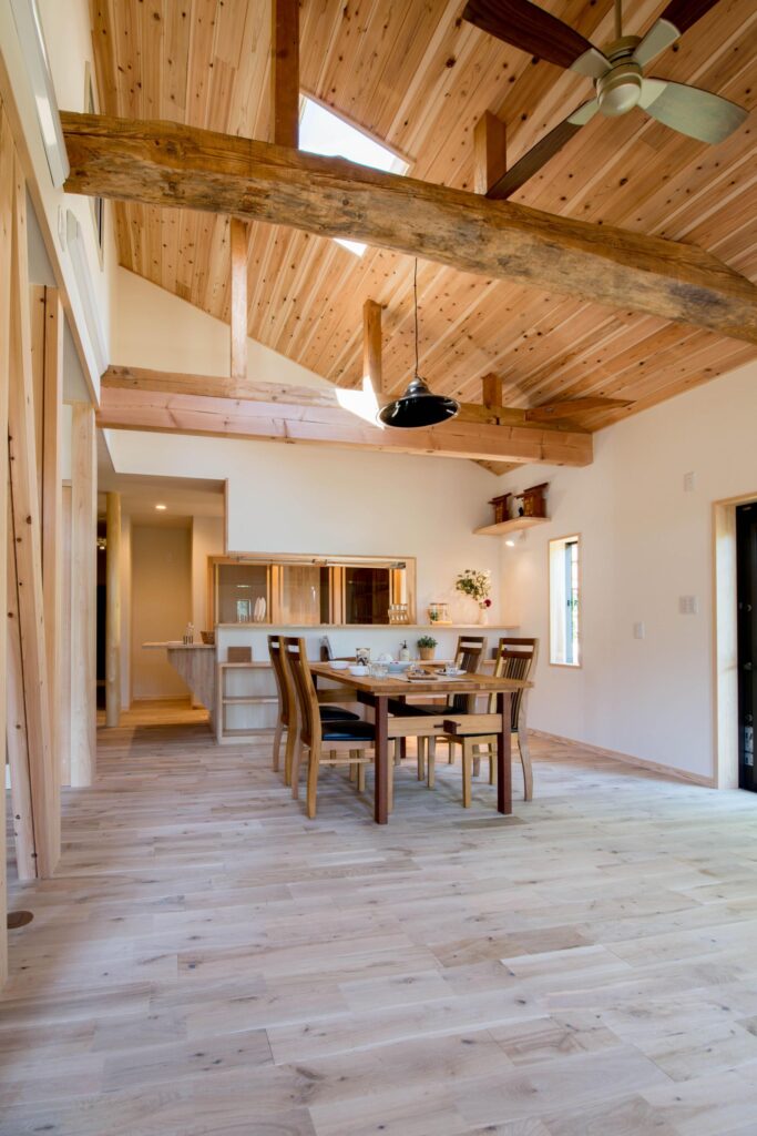 元々あった梁をみせるリノベーションで、インテリアの一部に。