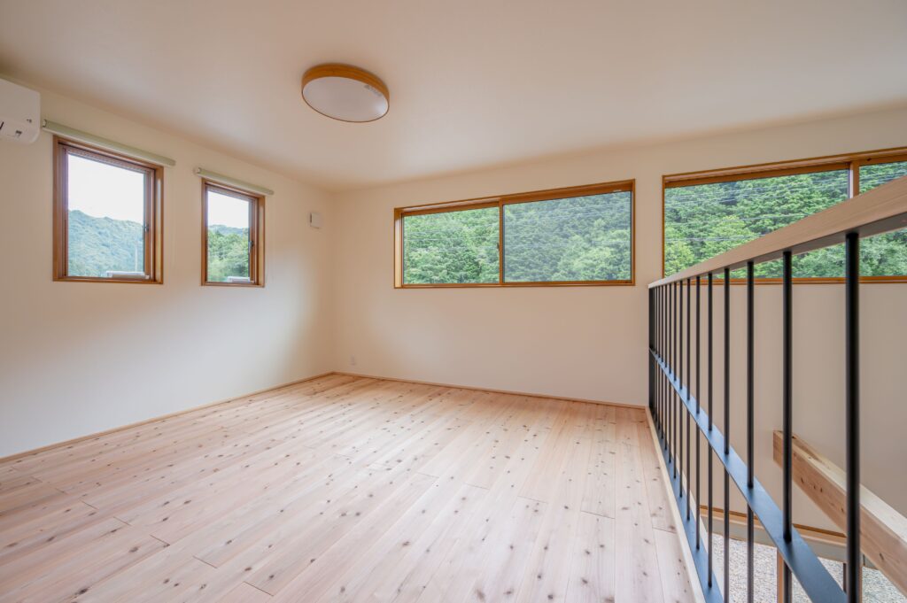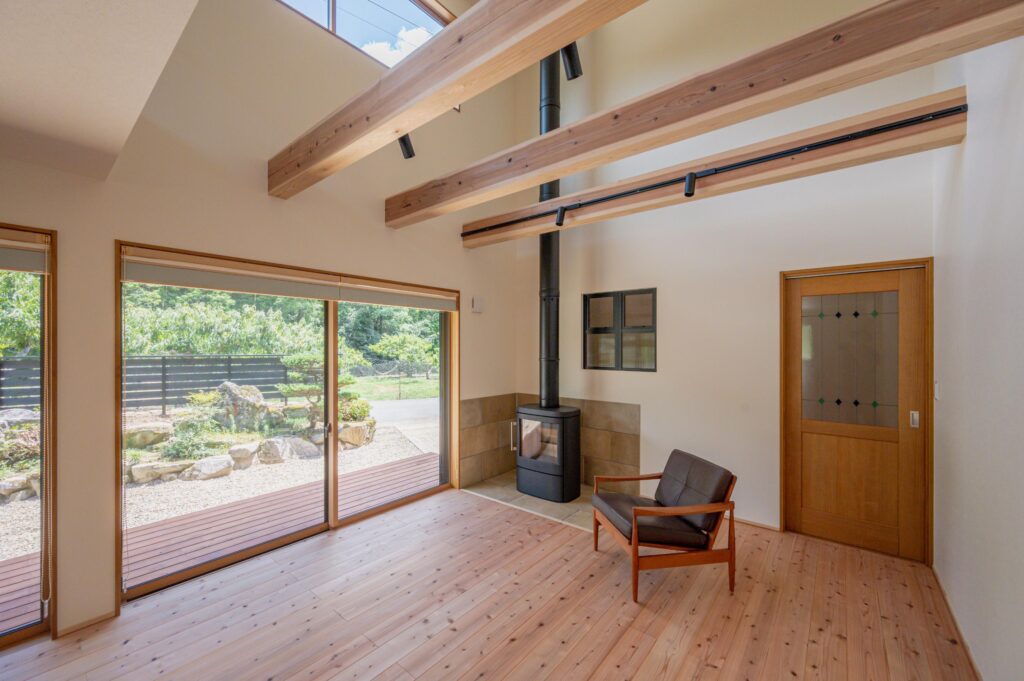薪ストーブの暖かさが吹き抜けをとおって2階のロフトも温めます。