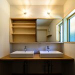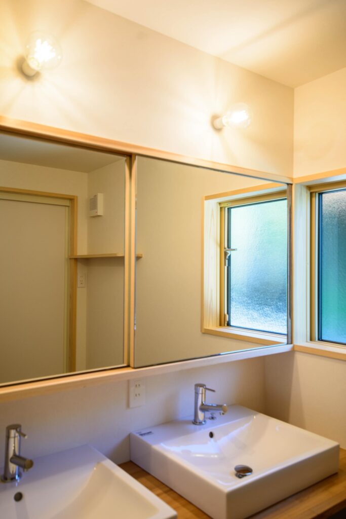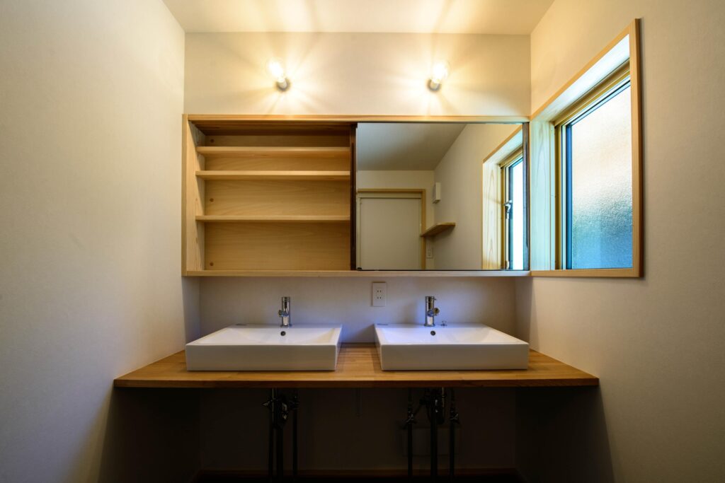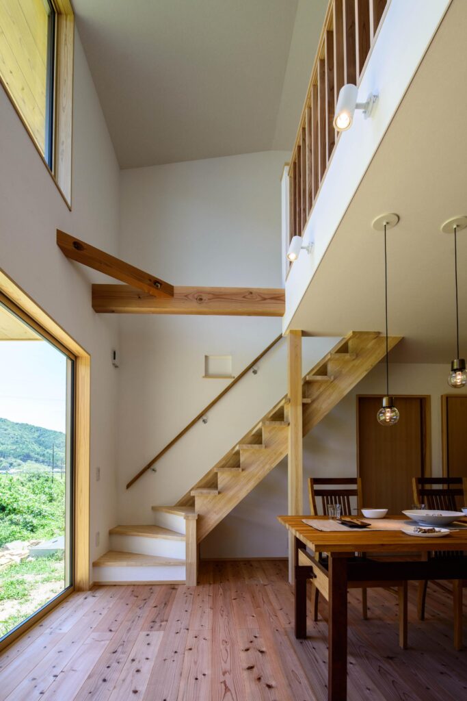 光の入り方、風の抜け方、家事動線などが緻密に考えられた機能的な家。床板や壁、造作家具、外壁に自然素材をたくさん施したお家。