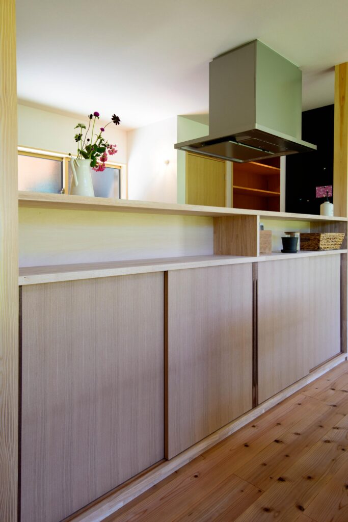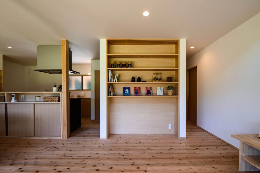居心地のよさを考え施工した無垢の木のリビングは家族が集まる大切な場所に。
