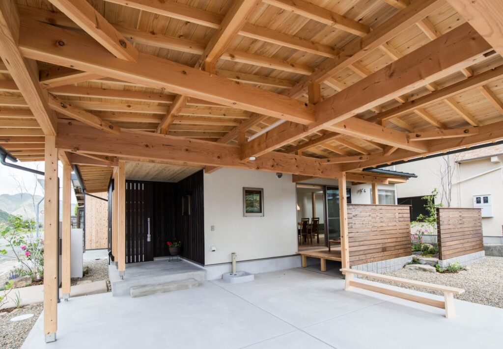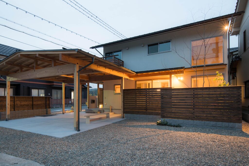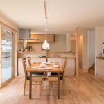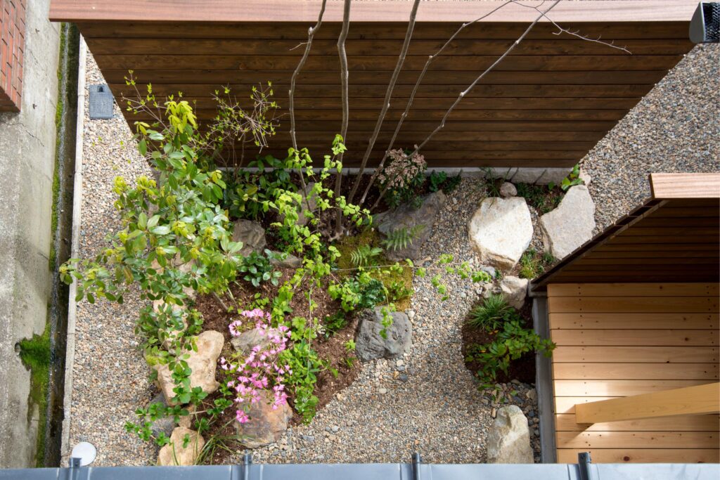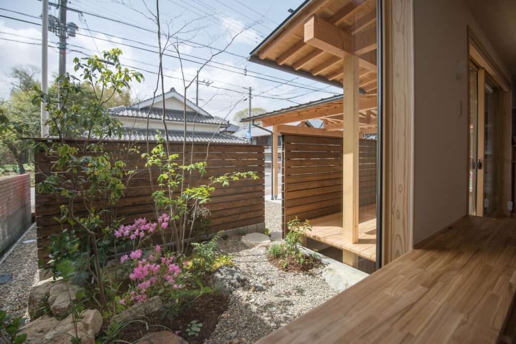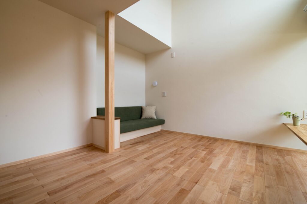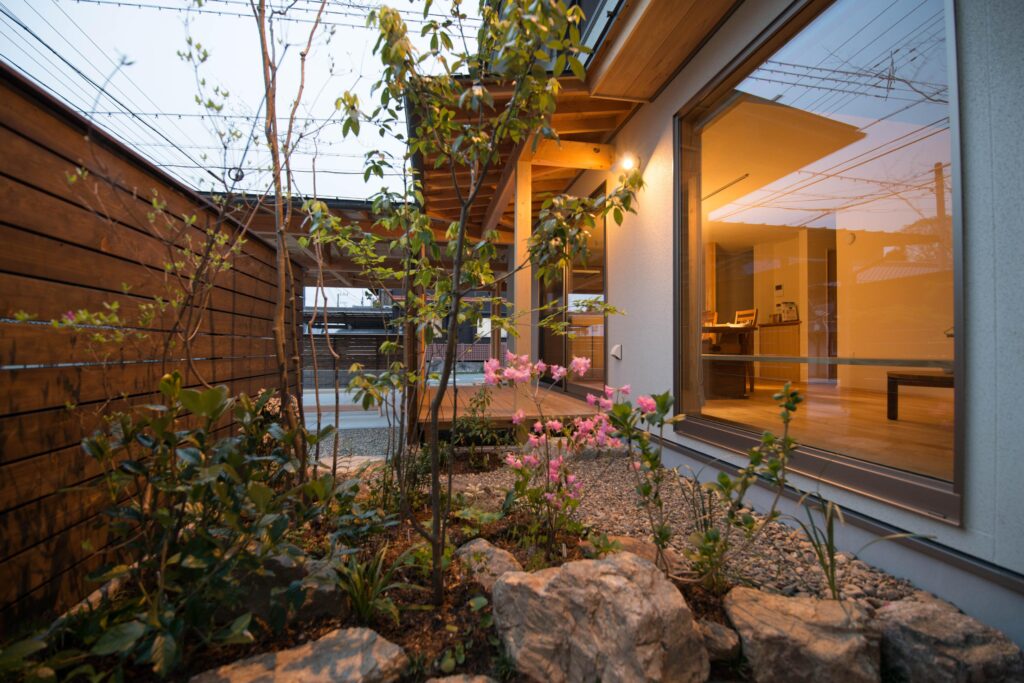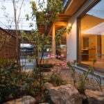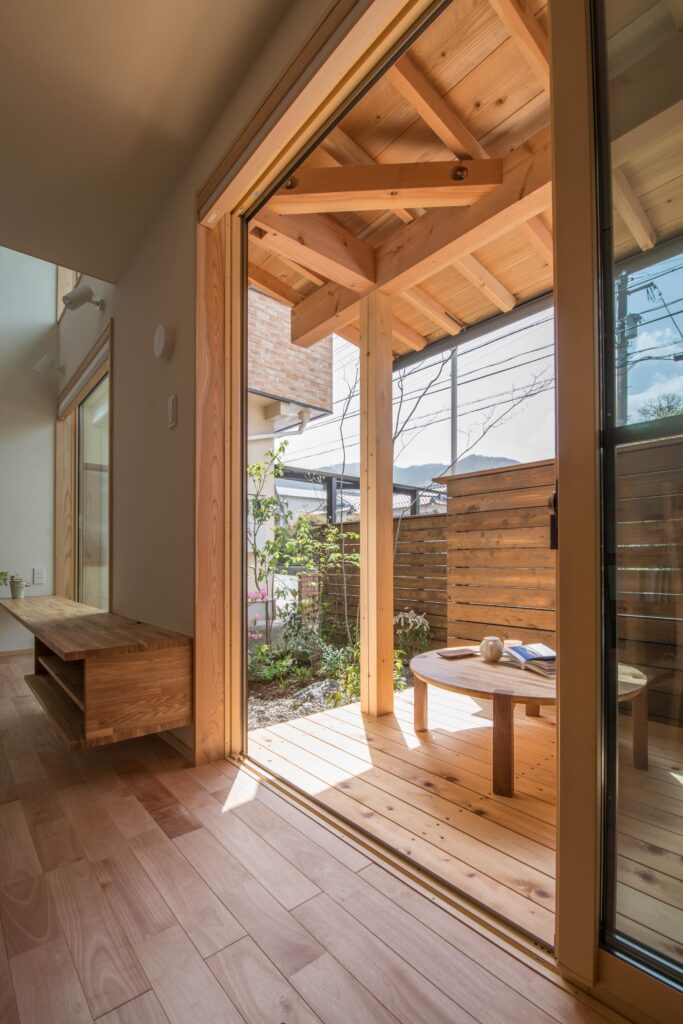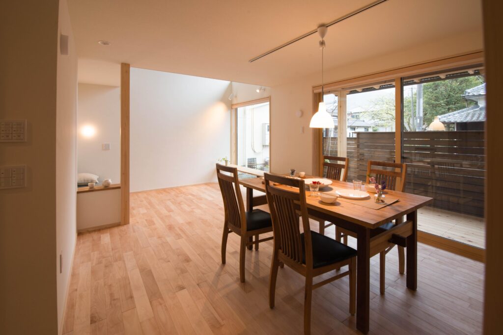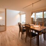 内とソトのつながりを大切に、と設計された心地よい住まい。居心地のよい無垢の木のリビングに自然と人が集まります。