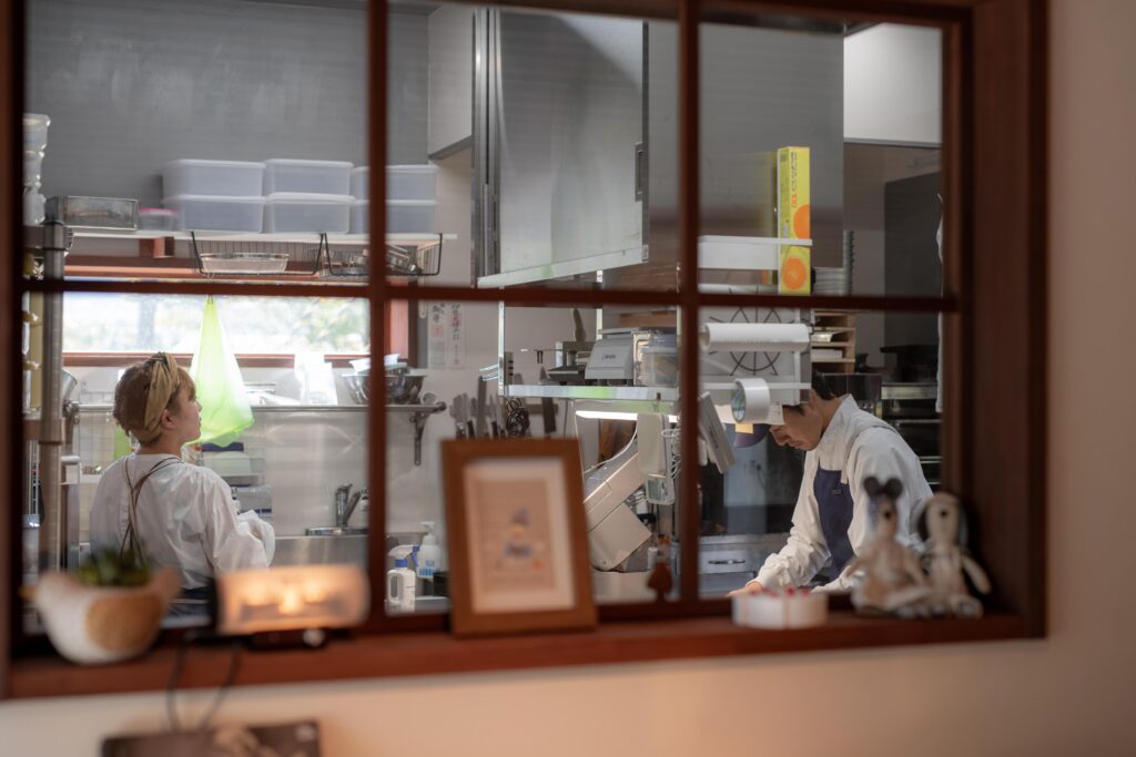 丹波篠山市にあるお菓子屋さんの工房のリノベーション。工房として使いやすいことはもちろん、おふたりの雰囲気にあうあたたかく、素敵な空間に。大半をご家族でセルフリノベーションされました。